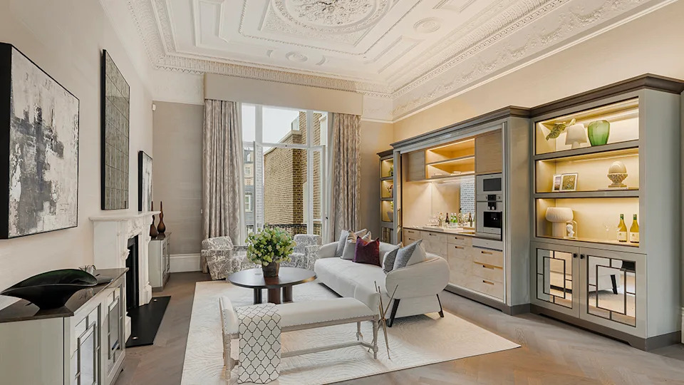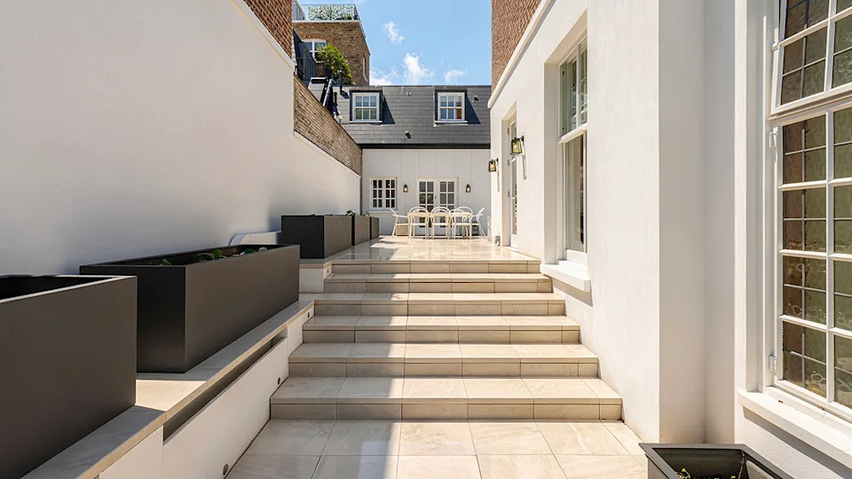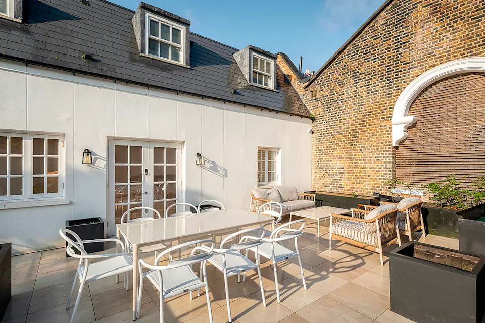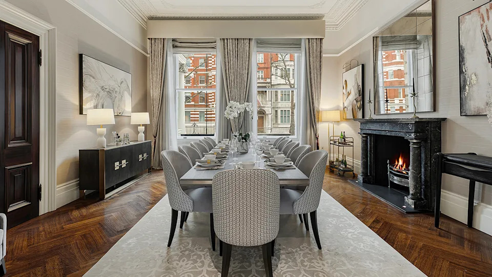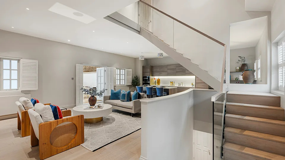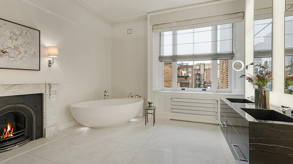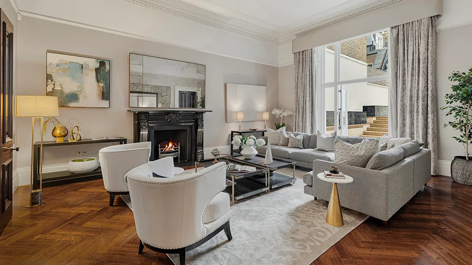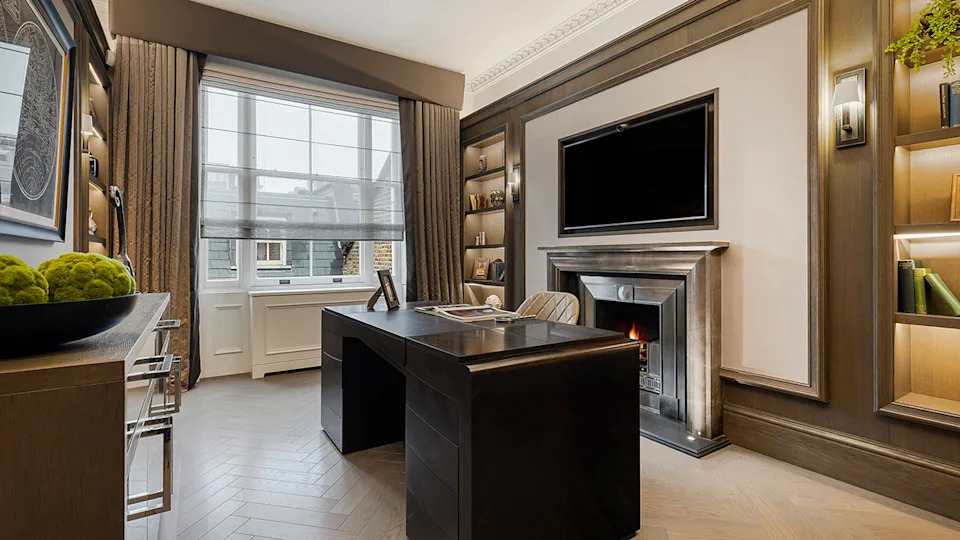 A fireplace warms the ground-floor reception room.