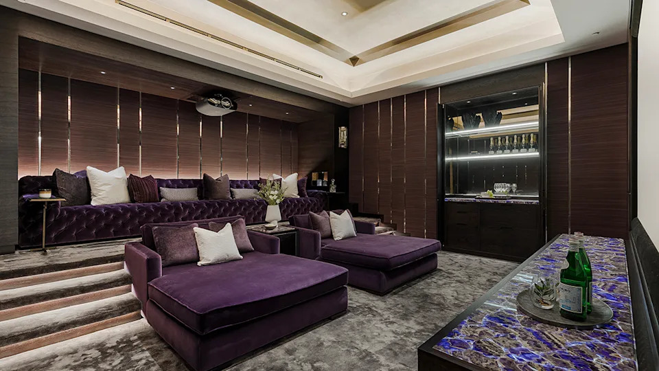 The luxurious cinema room with a bar.