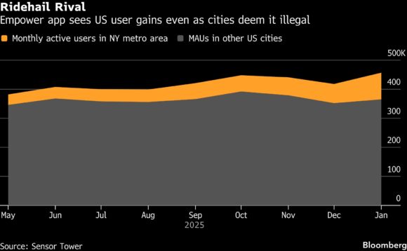 Even though the taxi and limousine commission has declared Empower an illegal app and warned riders and drivers of the risks of using it, the service’s monthly active users in the metropolitan area jumped 155% to 92,000 in January since last May, according to market intelligence firm Sensor Tower.