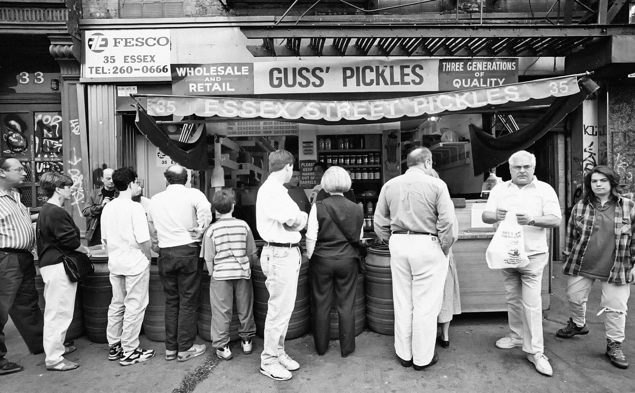Customers at Guss’ Pickles. Photo by Pickled City: The Story of New York Pickles by Paul van Ravestein and Monique Mulder