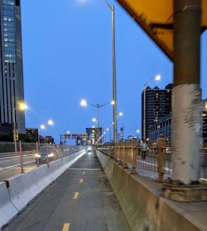 IMO moving the halal trucks back to the park fence — or limiting the number or taking them out of the park altogether — would help more than any of these plans. The route from the park to the bridge entrance is a shared path for pedestrians and bikes and almost impossible to navigate, even if you are just biking south through the Civic Center.