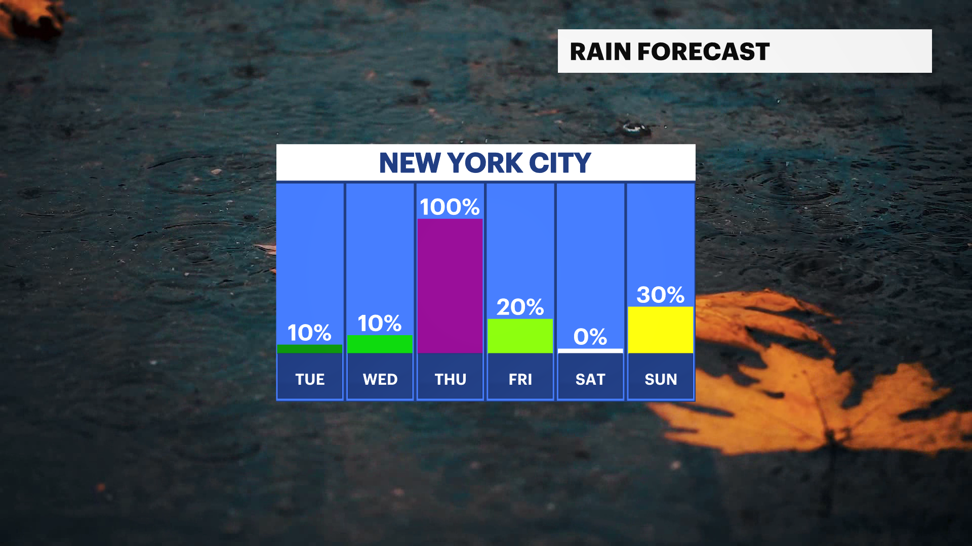 Friday (Halloween): Chance of breezy showers. Still unseasonably cool with a gradual clearing sky. Highs near 58. Lows near 48.