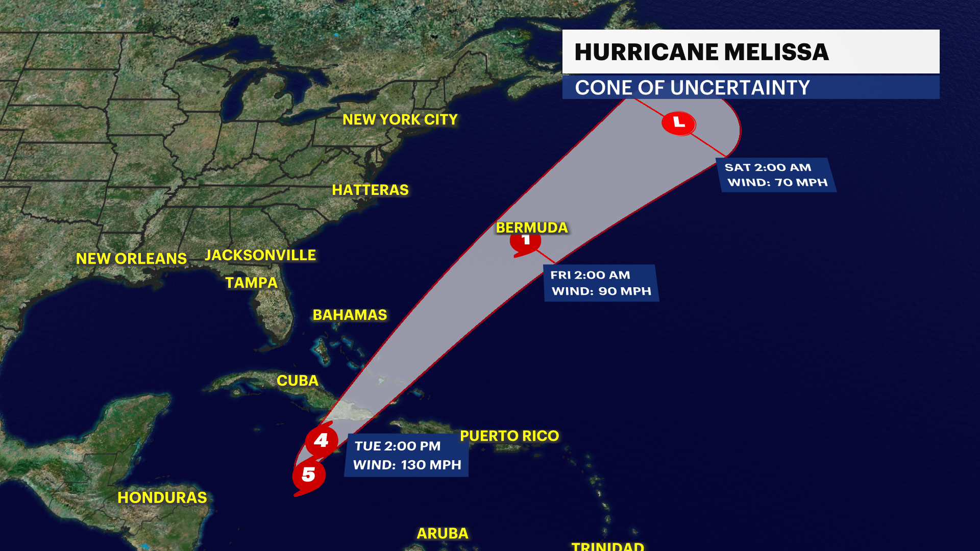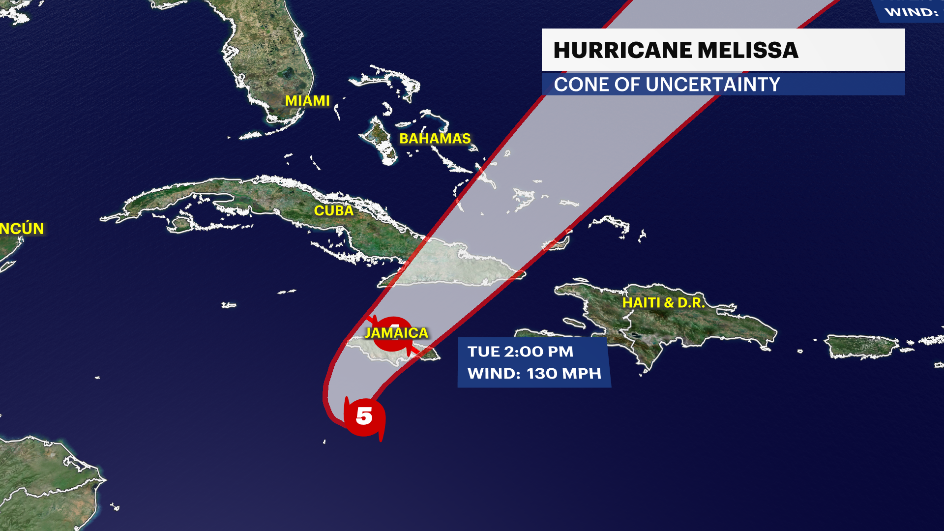 TRACKING THE TROPICS: Hurricane Melissa continues to strengthen as it approaches Jamaica. It is currently a Category 5 hurricane . This will be the first time ever in recorded history a Category 5 hurricane makes landfall in Jamaica. The strongest hurricane to ever hit Jamaica was at category four storm in 1988. 2-3ft of rainfall will bring catastrophic flooding and landslides to the island. Destructive winds will bring power outages and extensive infrastructural damage for days and even weeks. Significant storm surge of 9 – 13 ft is expected through tomorrow morning along the Eastern portions of Jamaica. Haiti and the Dominican Republic will continue to face Melissa’s wrath as it slowly moves north and wraps around more heavy rainfall and damaging winds to the neighboring islands. Eastern Cuba, Turks and Caicos and the Bahamas will be the next areas of concern as hurricane Melissa continues its northern path Tuesday and Wednesday.