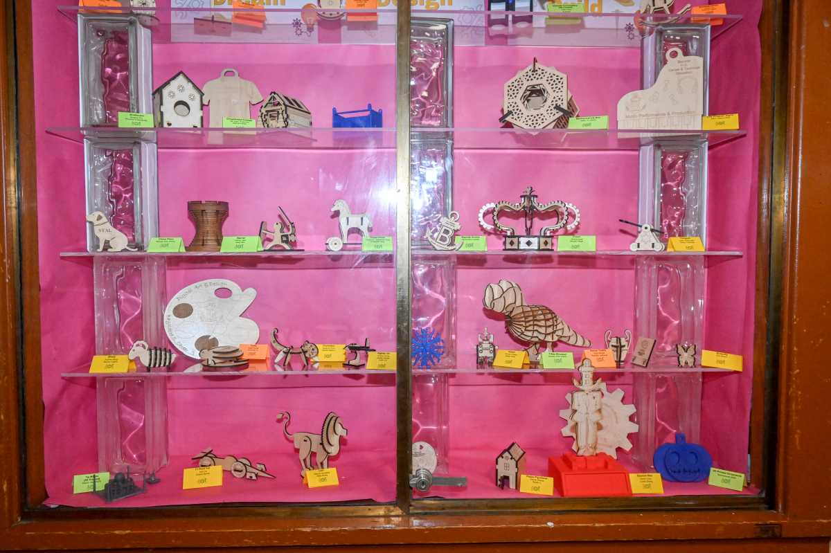 Displays in the hallway also showed off art projects made by engineering students in the school’s Digital Art and Design program, including an array of intricate 3D art pieces ranging from whacky animals to miniature homes to a mechanical iris box.