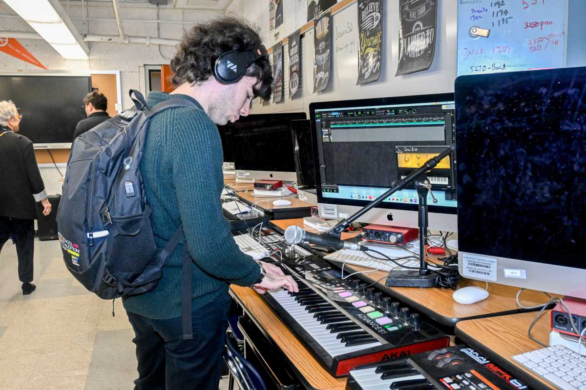 One room contained an array of keyboards hooked up to computers, a display used by students in the production portion of the music program.
