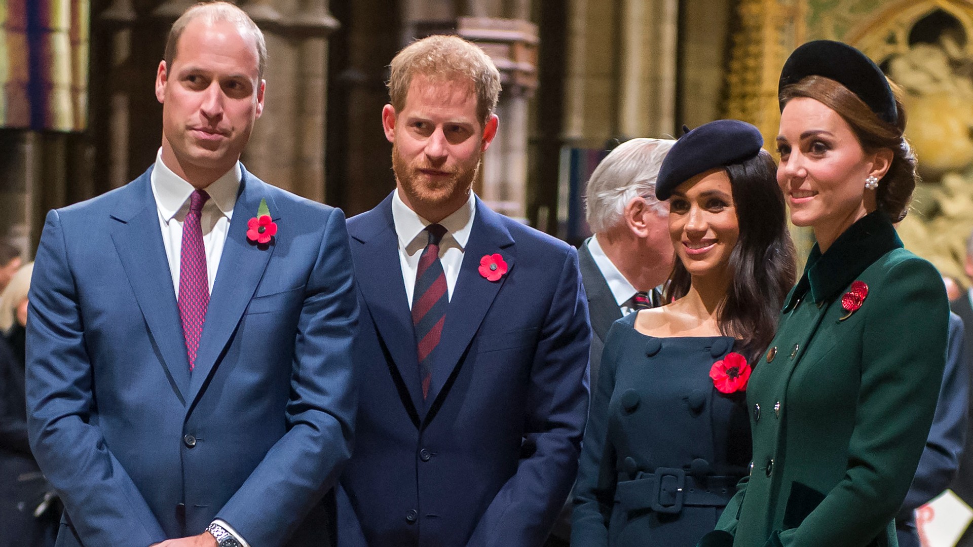 Prince William, Prince Harry, Meghan Markle and Kate Middleton attend a service to mark the centenary of the Armistice in 2018. By: MEGA