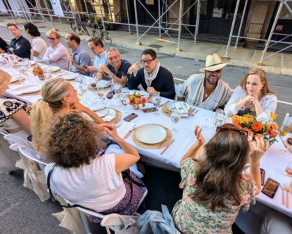 Longtime Tribecan Amy Bonomi will once again be the event’s primary sponsor. The wine will come from from Tribeca Wine Merchants and Adrian Chalk Selections; Madeline Lanciani at Duane Park Patisserie will provide dessert; the flowers will come from Élan Flowers on Worth. Sponsors to date include 60 Hudson Owner LLC, Donadic Construction, Damon Liss Design, The Greenwich Hotel, Duane Park Lofts and Gene Schafer at Arc Athletics.