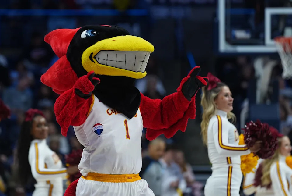 The Iowa State Cyclones mascot on the court during a break against the Syracuse Orange in the first half at Harry A. Gampel Pavilion in Storrs, Ct. on Mar 21, 2026.