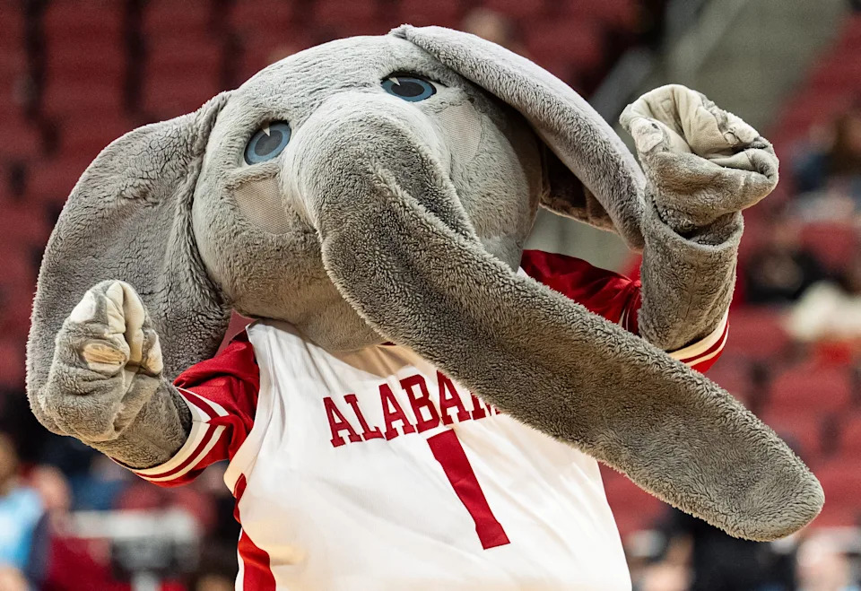 Alabama mascot Big Al works the crowd during a first-round game between the Rhode Island Rams and Alabama Crimson Tide in the 2026 NCAA WomenÕs Basketball Tournament at the KFC Yum Center, March 21, 2026, in Louisville, Ky.