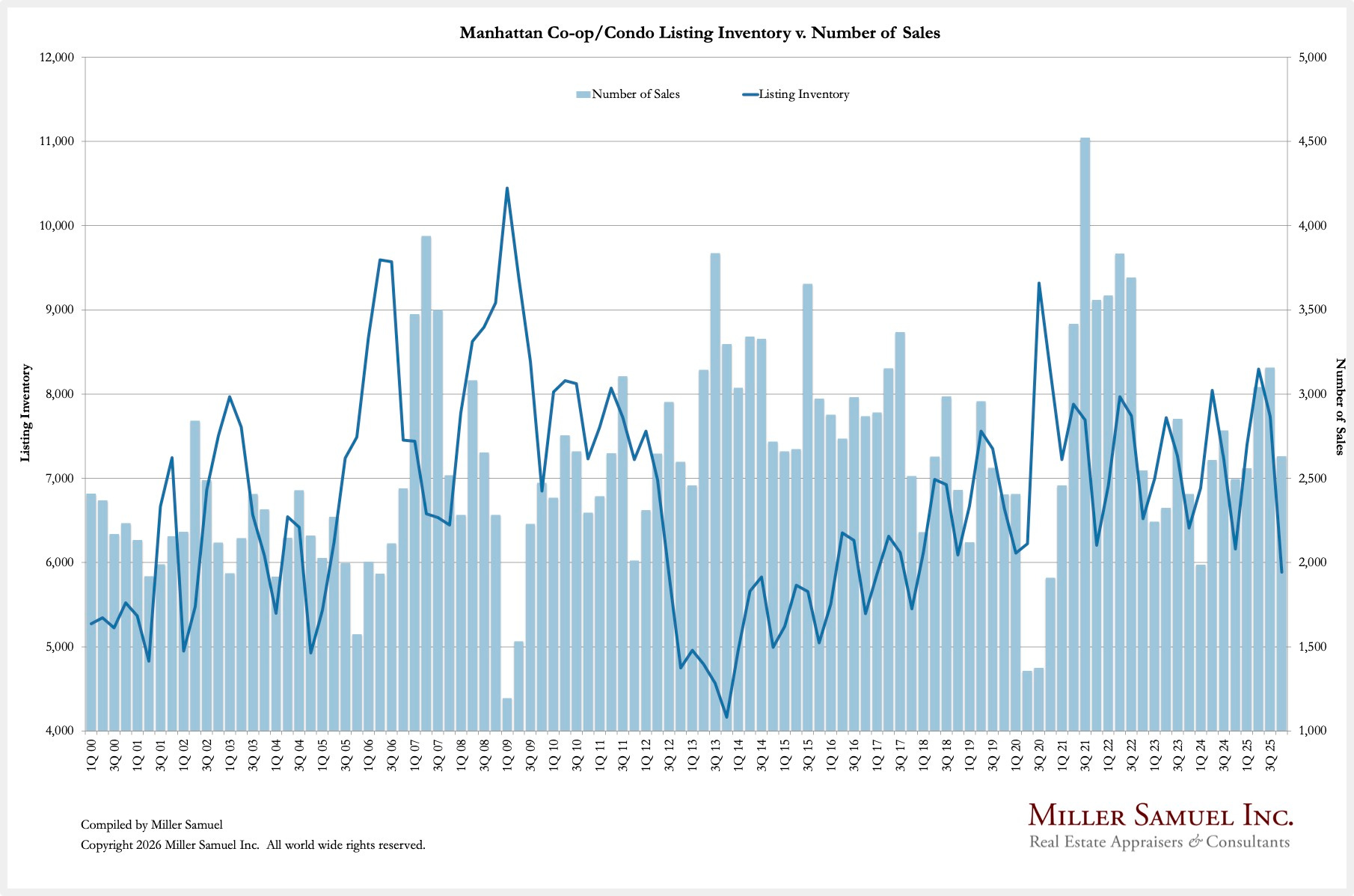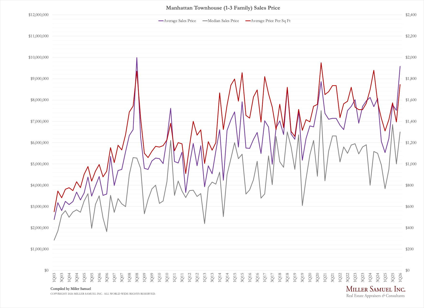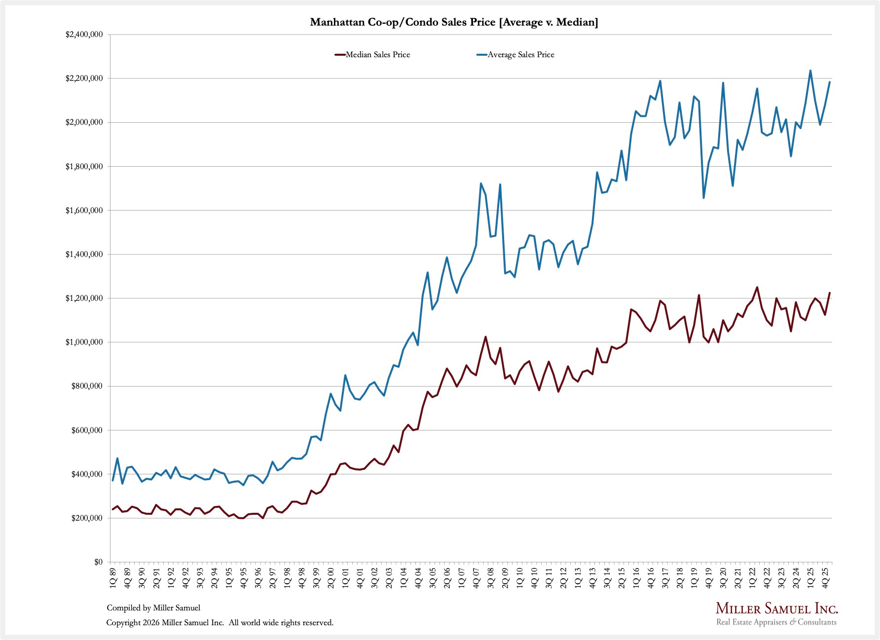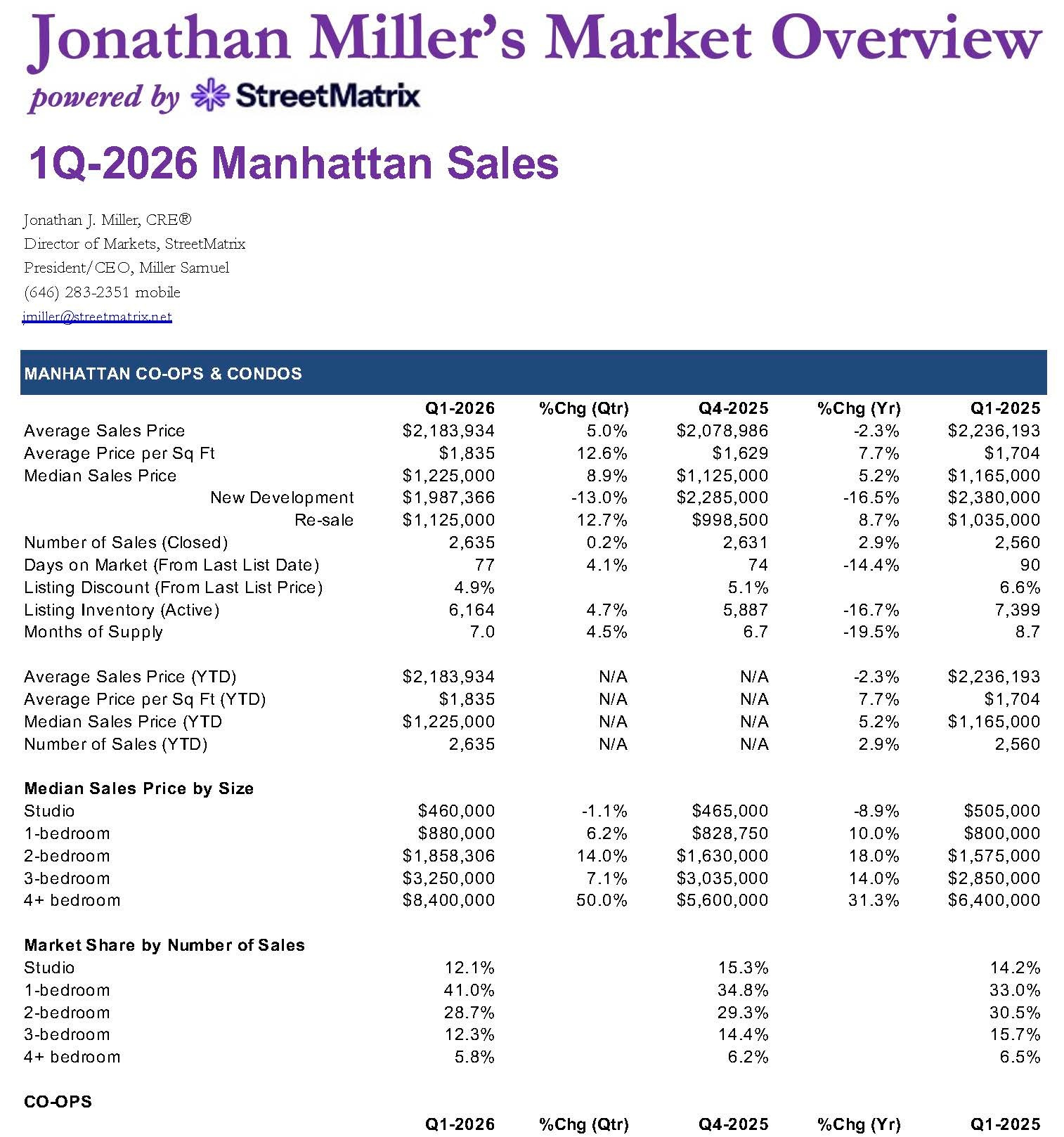 April 1, 2026: After 32 years of Manhattan housing market coverage, I have struck out with my own report effort and plan to continue the series, with quarterly releases. Initially, the report write-ups with charts will appear at HousingNotes.com. I plan to keep the co-op and condo analysis methodologies consistent, but I am adding the Manhattan townhouse market (1-3 families) as a new, separate addition to this quarterly effort.