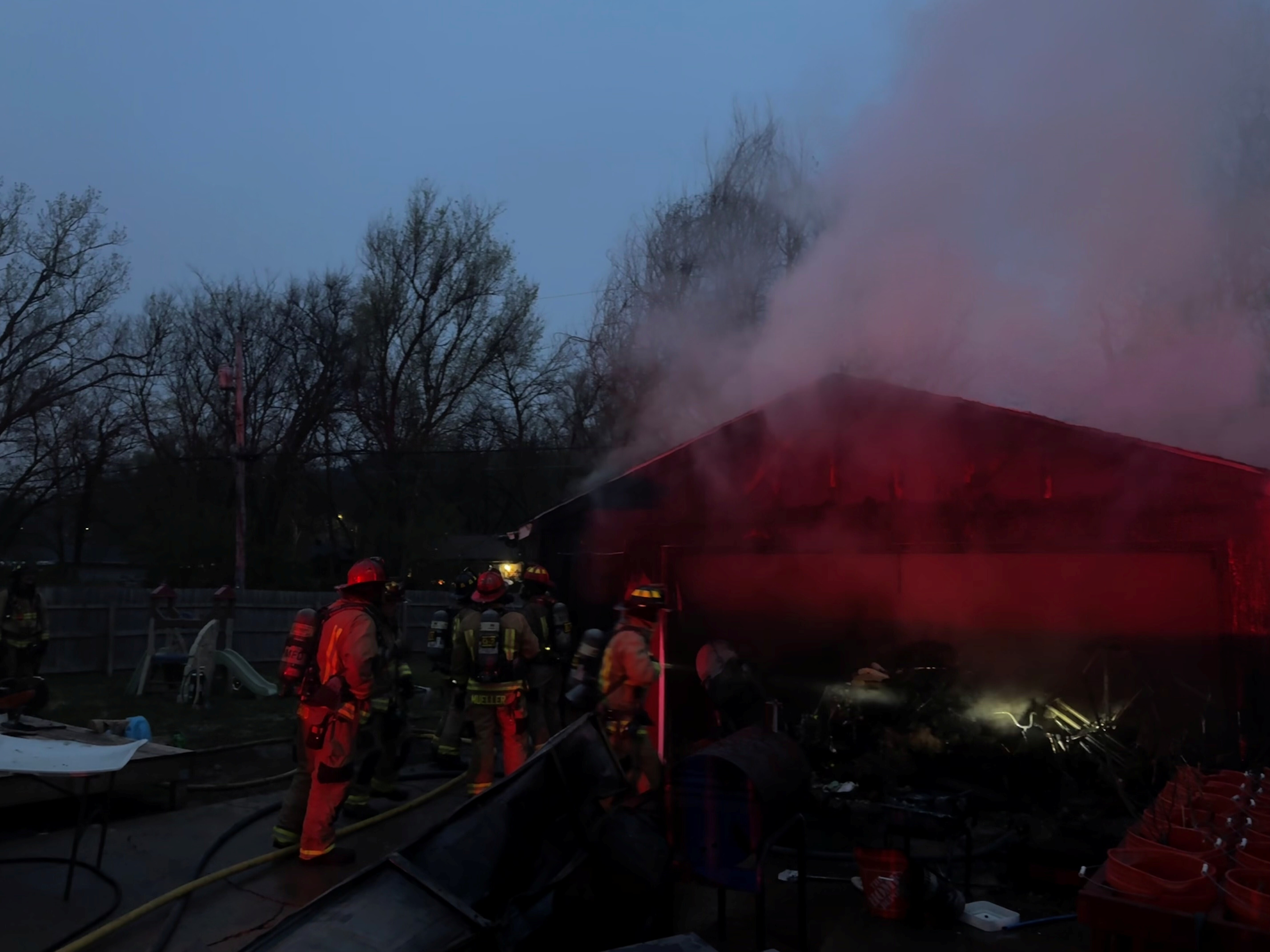The Manhattan Fire Department was dispatched around 7:45 p.m. to 1949 Judson Street and arrived to a detached two-car garage heavily engulfed in flames.
