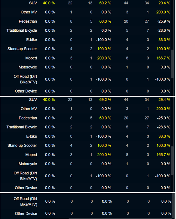 Note: The data presented on this page are preliminary and subject to change. Reasons for this may include re-classifications of deaths later determined to be unrelated to traffic collision, or delays in determining a death from traffic collision that occurred on a date subsequent to the actual crash. A comparison of current and previous year data may not be valid or statistically meaningful.