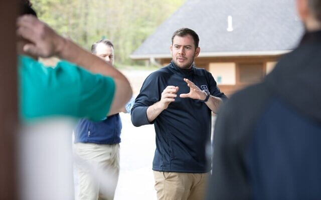 CSS volunteers and instructors during a training exercise in Westchester County, New York, April 28, 2025. (Luke Tress/Times of Israel)