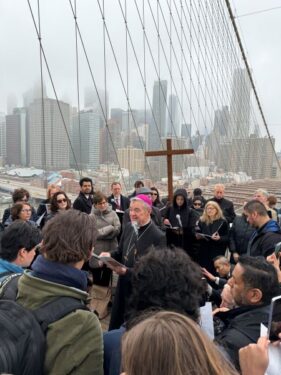 Bishop Brennan gave three more Gospel reflections during the pilgrimage, which continued through Lower Manhattan and ended at Saint Nicholas Greek Orthodox Church and National Shrine.