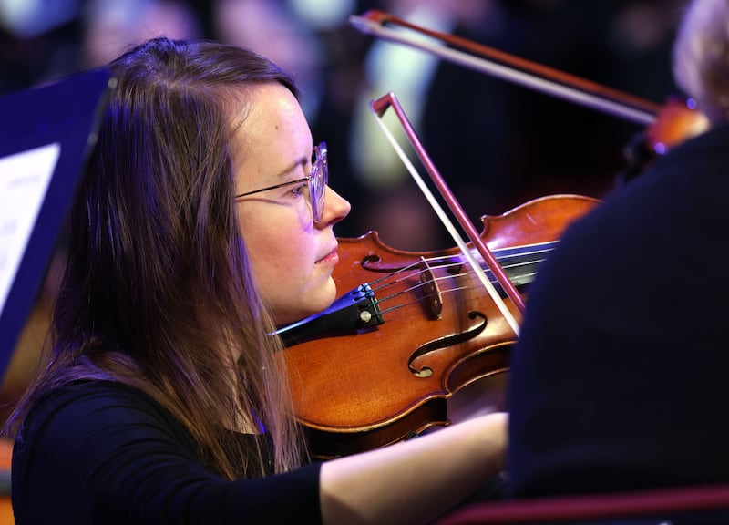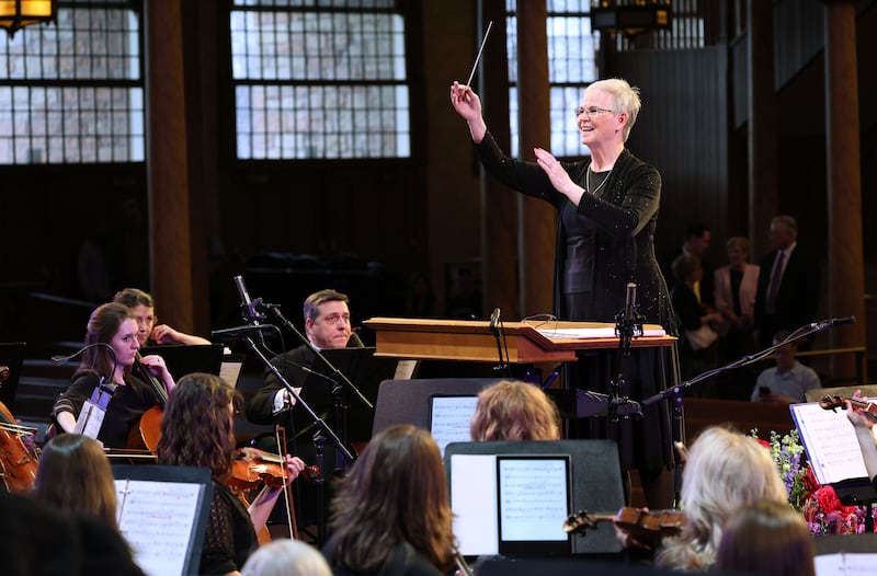 At the start of a two-hour rehearsal, where roughly 90 musicians were crammed together in a room at St. Olaf Catholic Church, conductor Jane R. Fjeldsted got emotional as she began to speak.