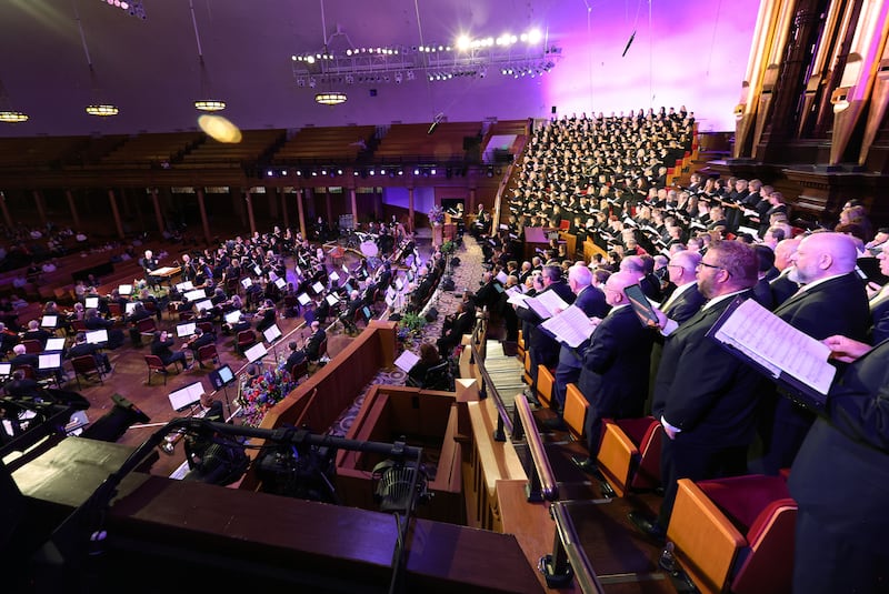 The Davis County Interfaith Choir and Orchestra perform during a full dress rehearsal of “Lamb of God” at the Salt Lake Tabernacle in Salt Lake City on Tuesday, March 17, 2026. | Jeffrey D. Allred for the Desere