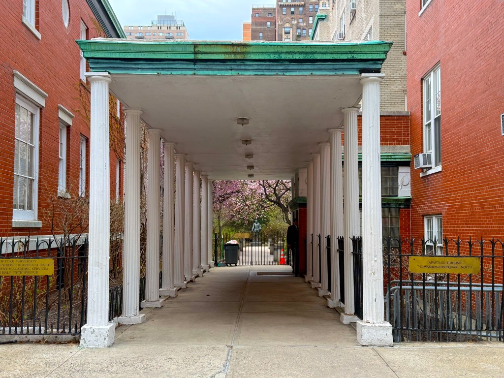 Beyond a colonnade-style entrance between the former stables of Washington Mews and “The Row” of 1830s townhouses on Washington Square North, my eyes caught sight of a slender patch of green.