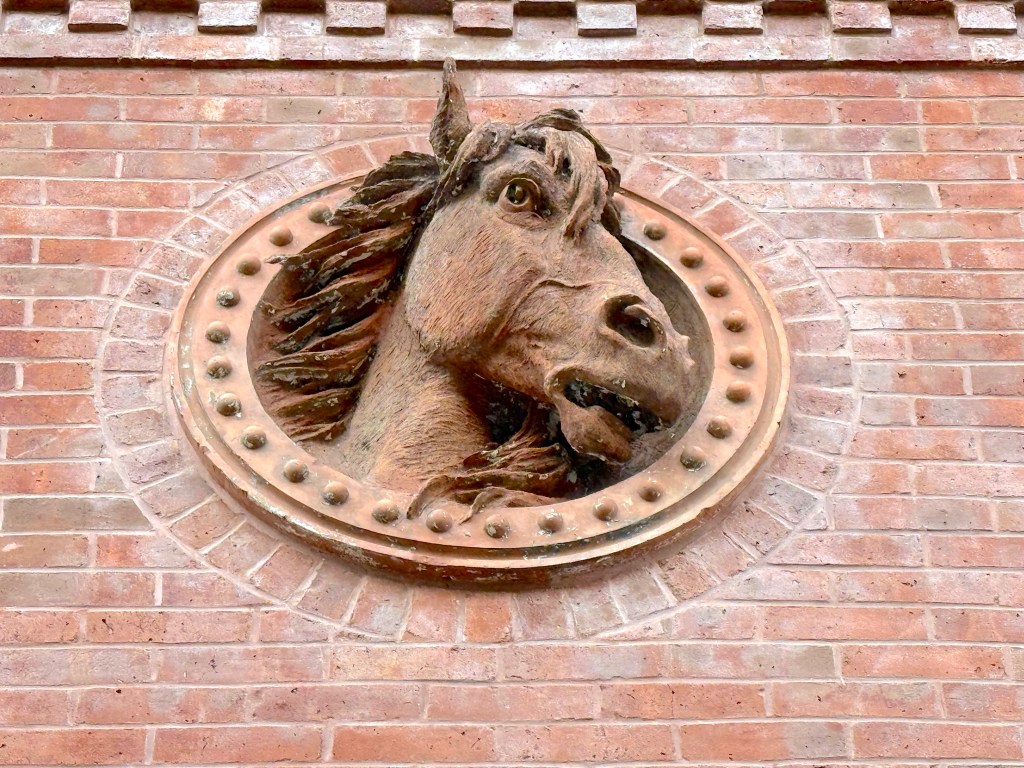 The Speedway Stables were also a product of the 1890s. Like many carriage houses, the facade featured sculptures of horse heads. These two powerful equines look like they were sculpted mid-trot, with their flared nostrils and wild eyes.