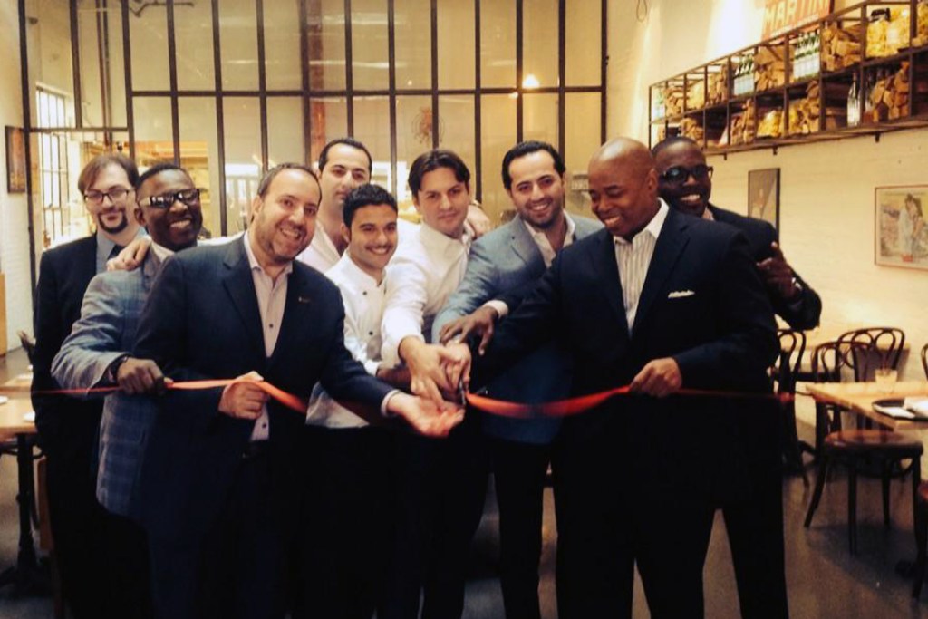 Federal prosecutors charged Zhan “Johnny” Petrosyants, third from right, in a multi-million-dollar insurance scam. Petrosyants is a longtime friend of former Mayor Eric Adams. Credit: Brooklyn Chamber of Commerce/Twitter
