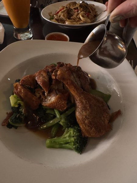 An attempt at an aesthetic photo of the roast duck with tamarind sauce at One More Thai in NYC. (Devin Hogan)