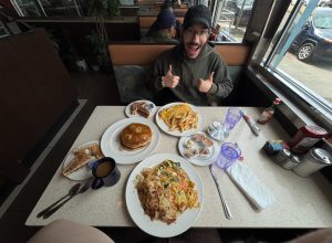 The Editor-in-Chief, Marcus Ramos, properly cheesed to be at his favorite diner. (Devin Hogan)