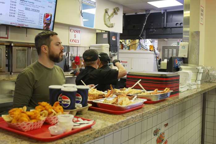 Manager, AJ Palumbo is the grandson of the Tony in Tony’s Pier and works the counter on a busy Easter Sunday. Photo by ET Rodriguez