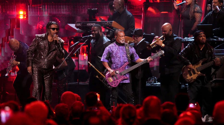 CLEVELAND, OHIO – OCTOBER 19: Inductees James J.T. Taylor (2nd from L) and Robert ‘Kool’ Bell of Kool & The Gang perform onstage at the 2024 Rock & Roll Hall Of Fame Induction Ceremony at Rocket Mortgage Fieldhouse on October 19, 2024