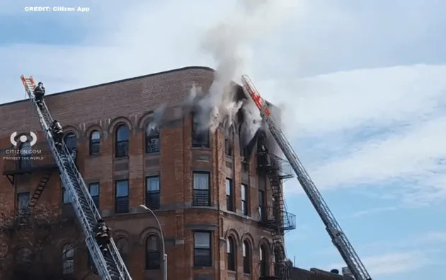 Citizen video shows flames and smoke pouring out of broken windows from the multiple dwelling at 538 Claremont Pkwy in the Bronx.