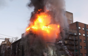 Firefighters battled a massive fire that erupted at an apartment building in Manhattan on Sunday morning.