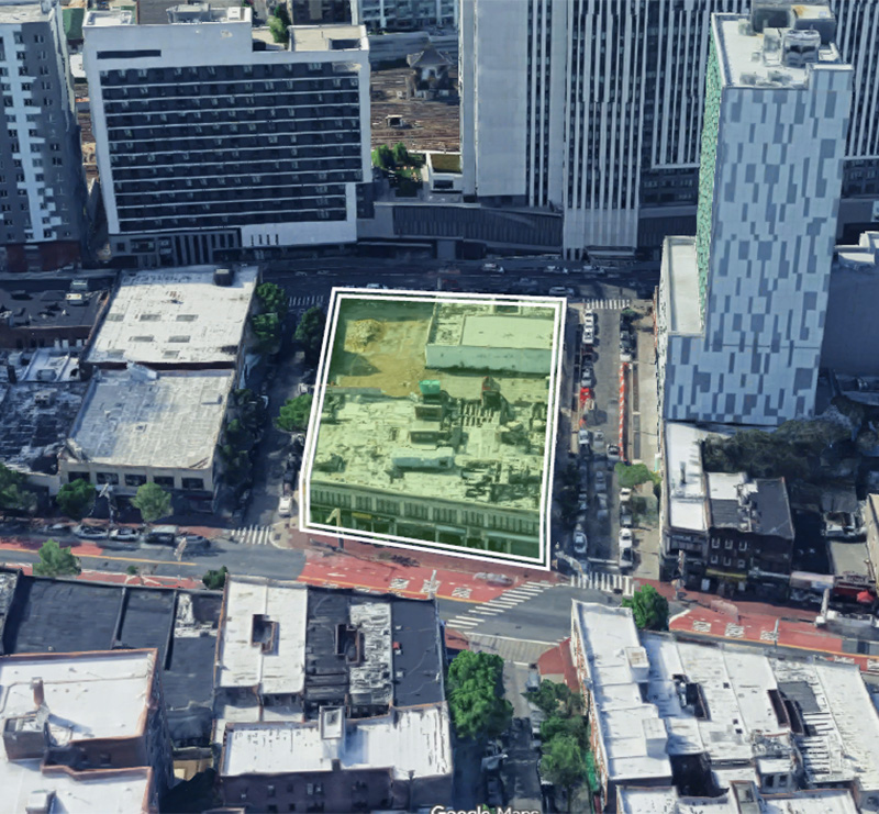 Air rights from the Jamaica Ave. building were transferred onto the three Archer Ave. lots. This 126-ft. x 245-ft. irregular site is located on Archer Ave., across the street from LIRR/Jamaica station.