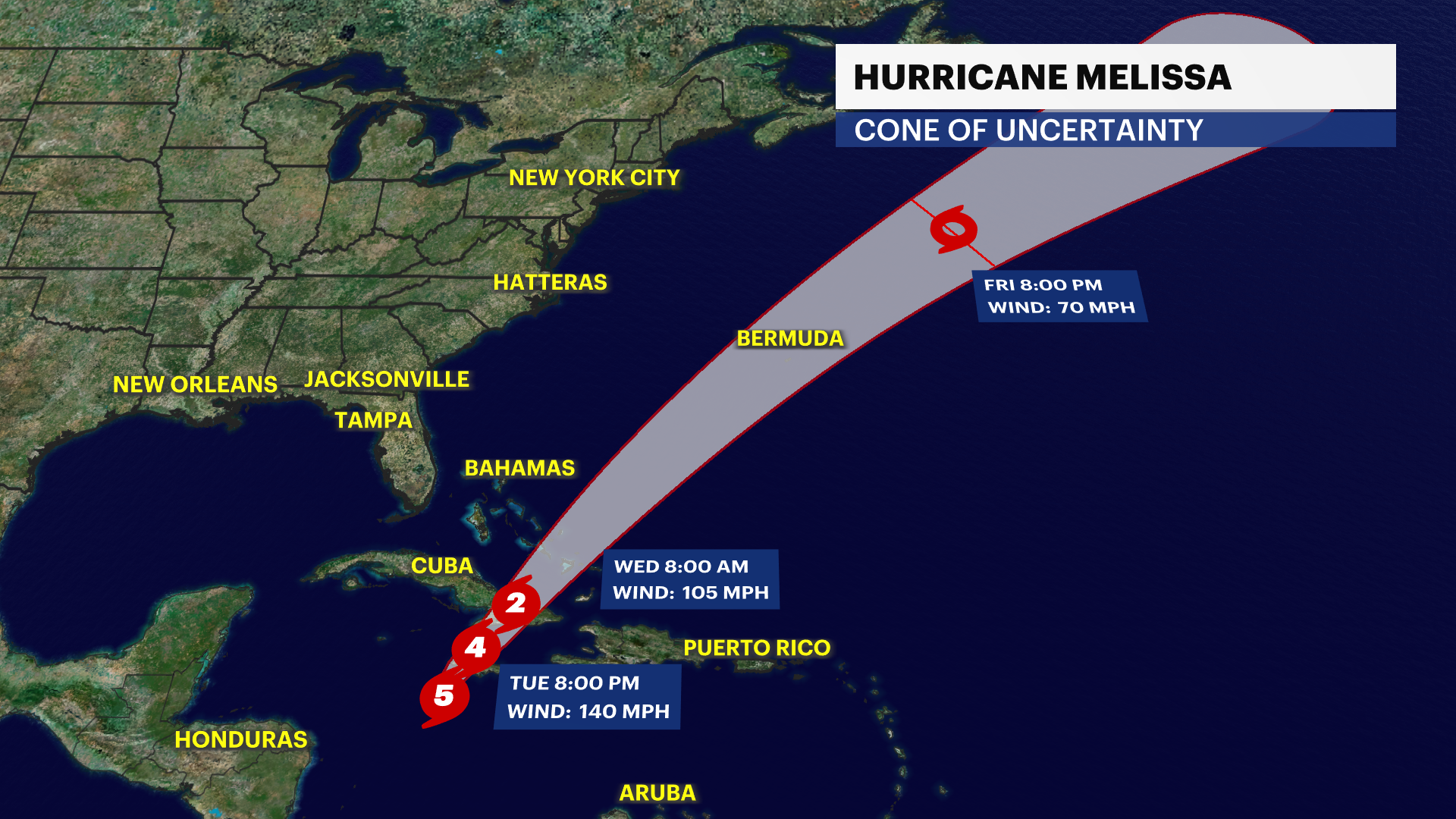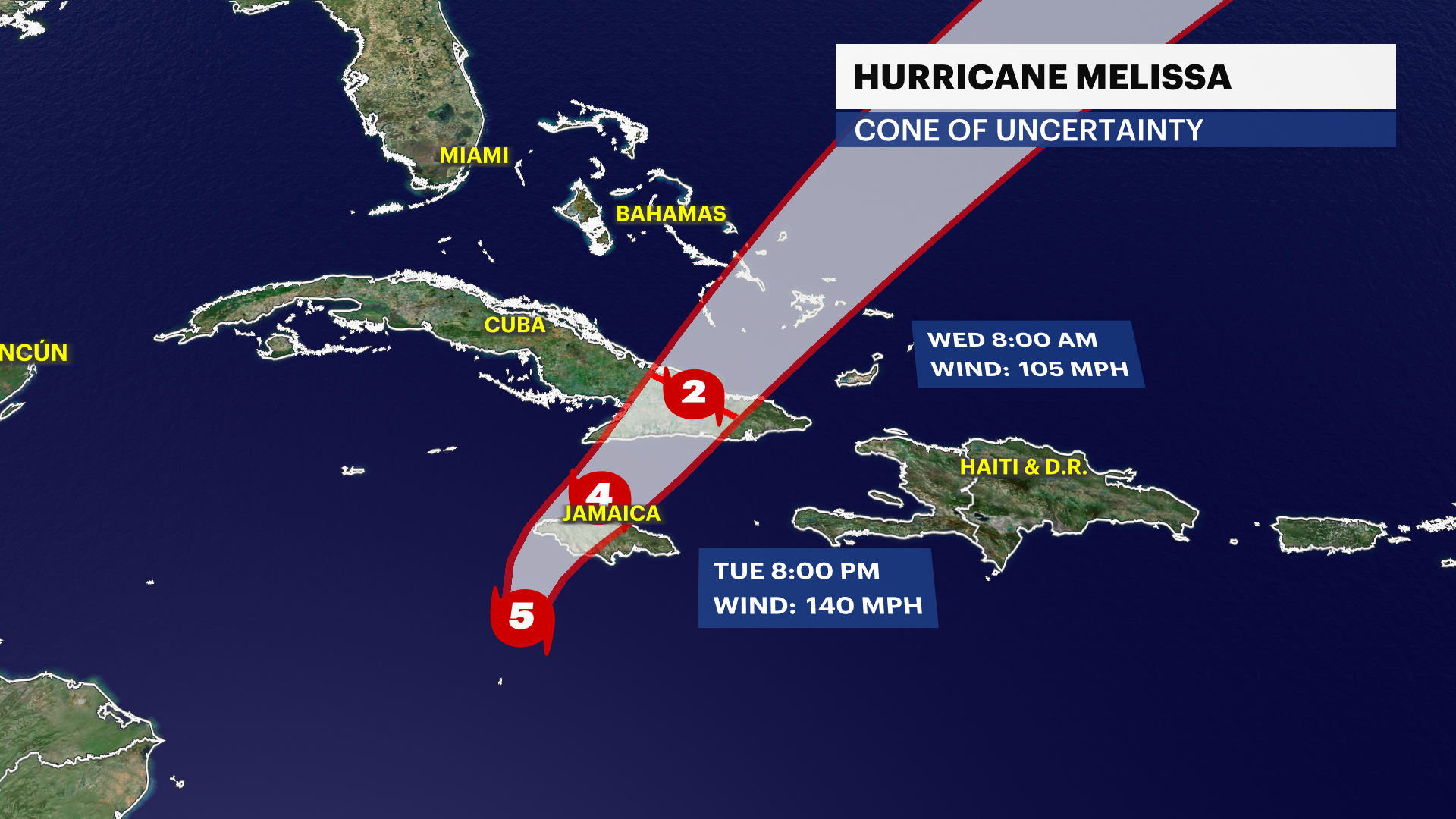 TRACKING THE TROPICS: Hurricane Melissa slowly moves into western Jamaica this morning. It is expected to make landfall later this morning as major category five storm. This will be the first time ever in recorded history a category five hurricane makes landfall in Jamaica. The strongest hurricane to ever hit Jamaica was a category three storm in 1988 (Gilbert). Catastrophic flooding, landslides, destructive winds and significant storm surge will bring power outages and extensive infrastructural damage for weeks. Haiti and the Dominican Republic will continue to face Melissa’s wrath as it slowly moves north and wraps around more heavy rainfall and damaging winds to the neighboring islands through this evening. Eastern Cuba, Turks and Caicos and the Bahamas will be the next areas of concern for powerful winds, major flash flooding and life-threatening storm surge on Wednesday. Hurricane Melissa continues its northern path towards Bermuda by the end of this week. Stay tuned for updates!
