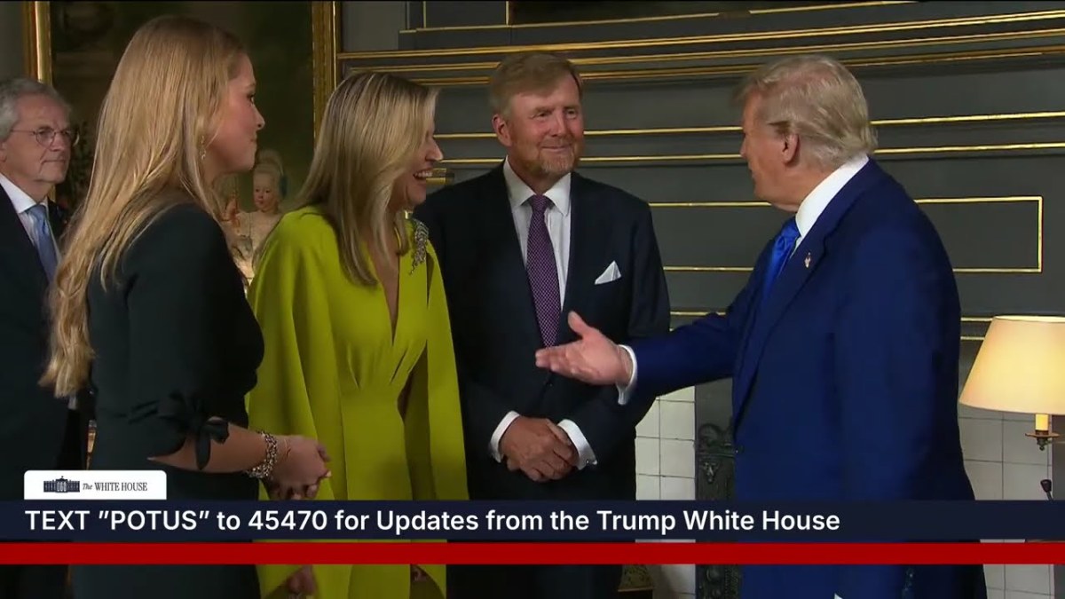 President Trump greets King Willem-Alexander and Queen Máxima of the Netherlands.