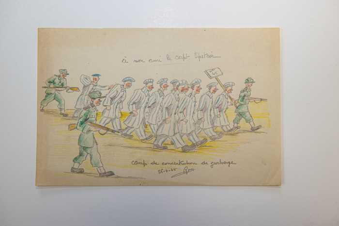 The drawings, done in the two weeks following the liberation of the Langenstein-Zwieberge concentration camp by American troops, had been given to a U.S. Army Captain William Epstein, who went on to attend Cornell University Medical School.