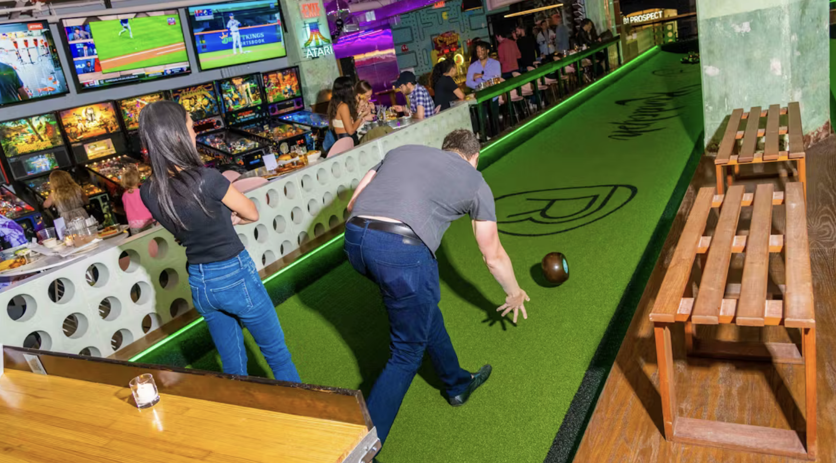 Come to The Randolph for some Feather Bowling. Book here for $46/hour. Families can also play pinball, vintage arcade games, foosball, shuffle board, and more. Tokens are $1. They offer a large food and drink menu. The Randolph is open at 12:00pm on weekdays and 11:00am on weekends (with the game room opening at 4:00pm Tuesday-Friday). They are closed on Mondays. Note: kids are only welcome on weekdays before 6pm, Saturdays before 2pm, and Sundays all day.