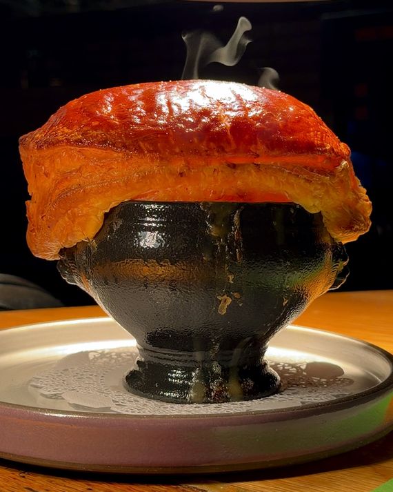 The menu, likewise, accommodates without condescending. If Kelley and Grossman occasionally overcomplicate, they have still ensured that there’s enough for the picky of any age. Dry-aged duck breast in a sticky, date-infused sauce is adult contemporary, while the red-sauce rigatoni is weeknight pasta done right, a kids’-menu classic reimagined for grown-ups. It’s pricked with Calabrian chiles and given a smoky bass note of disappearing ’nduja. The hero dish remakes a cafeteria staple, potpie, for the gifted-and-talented set: self-possessed neighborhood tweens who might discourse on the superiority of prawns to chicken, the richness lent by fish bones to the parsnip-studded broth, the soft heat of Espelette warming the filling and gilding the pastry an elegant marigold.