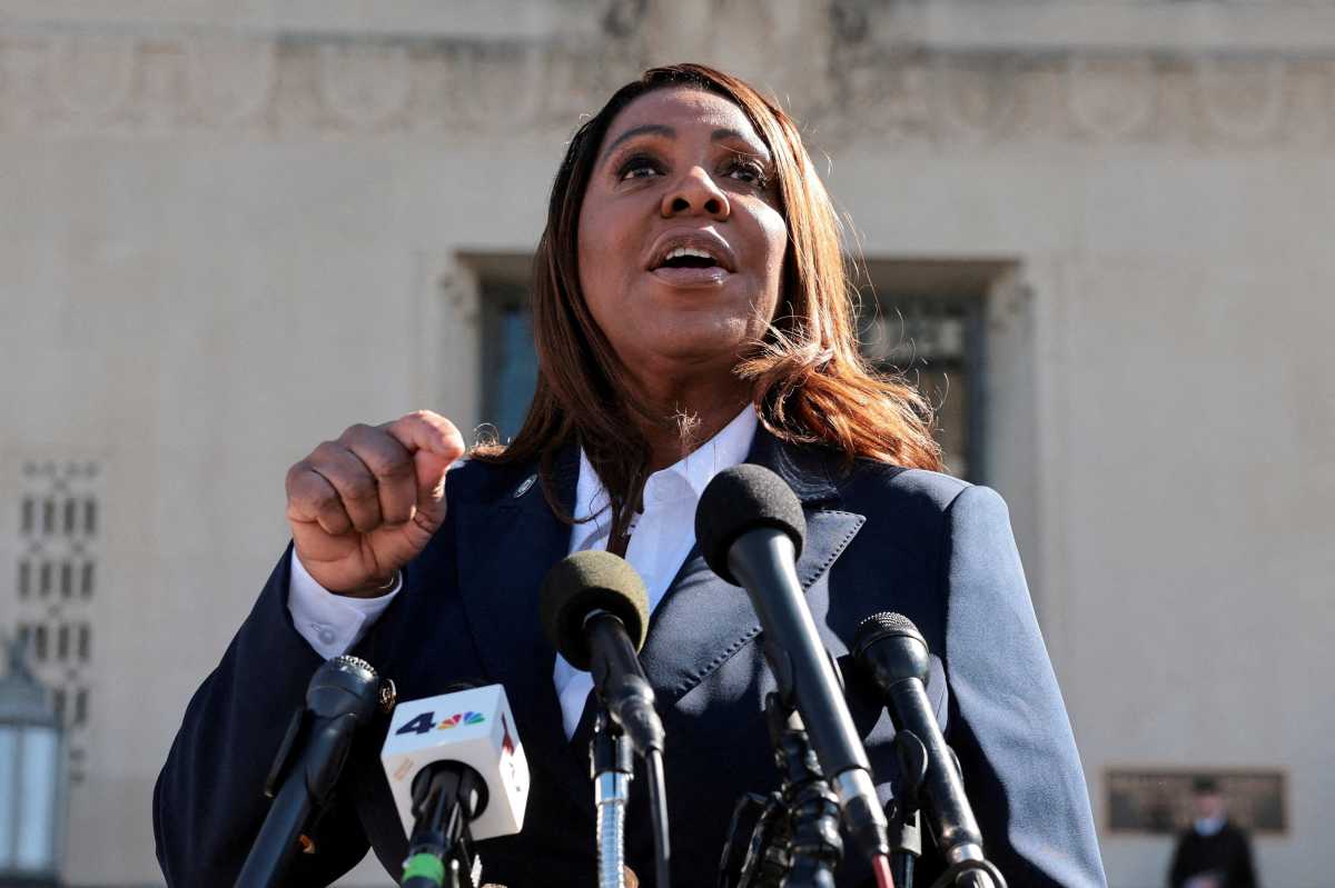 FILE PHOTO: New York Attorney General Letitia James speaks to the media after she pleaded not guilty to charges that she defrauded her mortgage lender, outside the U.S. District Court for the Eastern District of Virginia in Norfolk, Virginia, U.S., October 24, 2025. REUTERS/Jonathan Ernst/File Photo