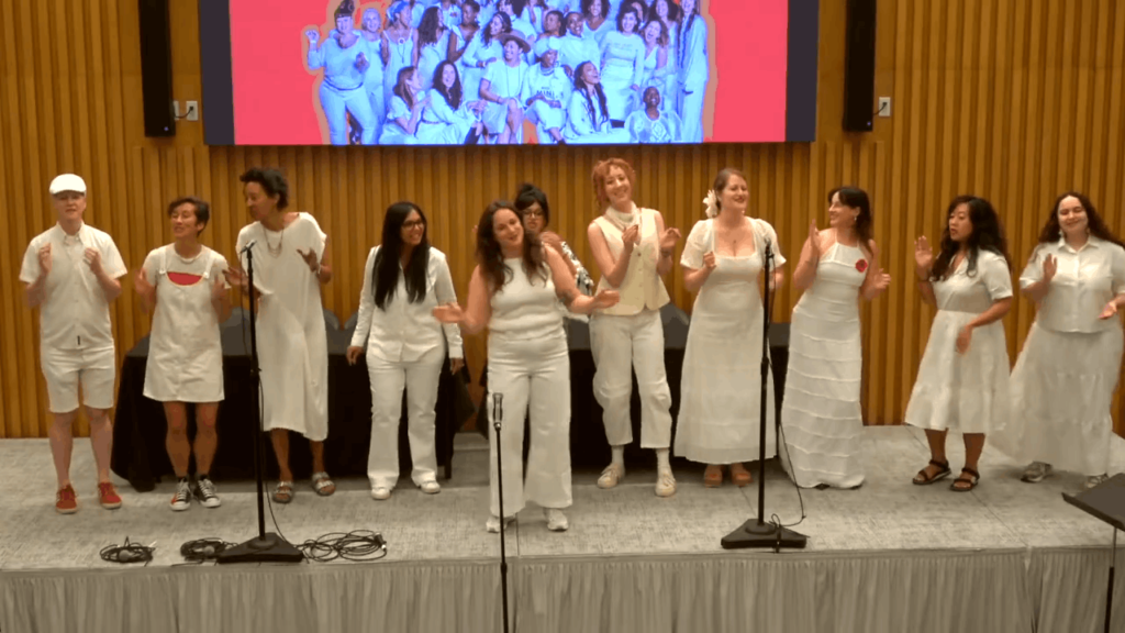 The program also highlighted the cultural dimension of the mobilization, with performances from the Resistance Revival Chorus, the Middle Collegiate Church Gospel Choir, Keris Lové, Mysonne the General, and The Freedom Dabke Group, as well as a live DJ set from Dr. Justis Lopez (DJ Faro). Attendees participated in public readings of “Letters to America,” sharing personal reflections on the country’s past, present, and future.