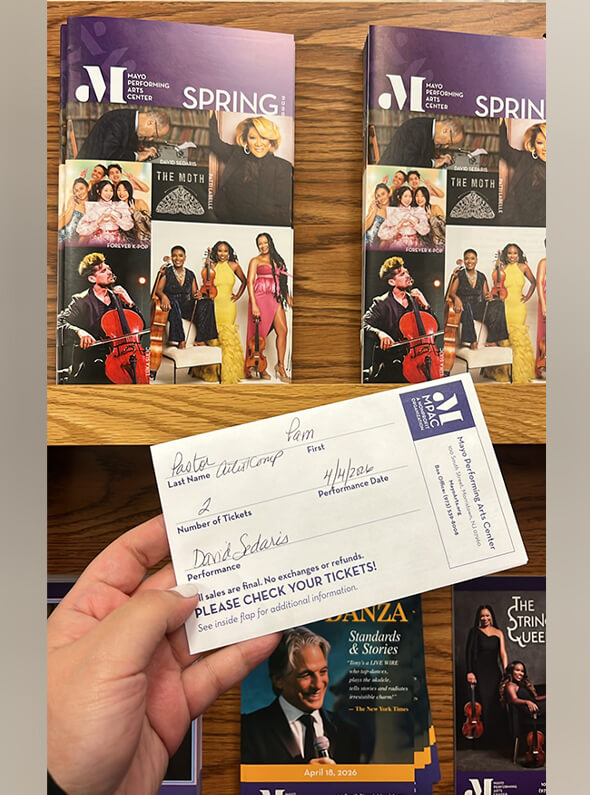 “David Sedaris Tonight at 8 p.m.!” read the electronic board outside the Mayo Performing Arts Center.