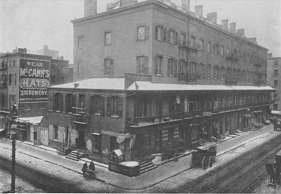 Earlier in the century when Bleecker Street was an elite address, the land was the site of posh terraced residences called DePauw Row (below, 1896).