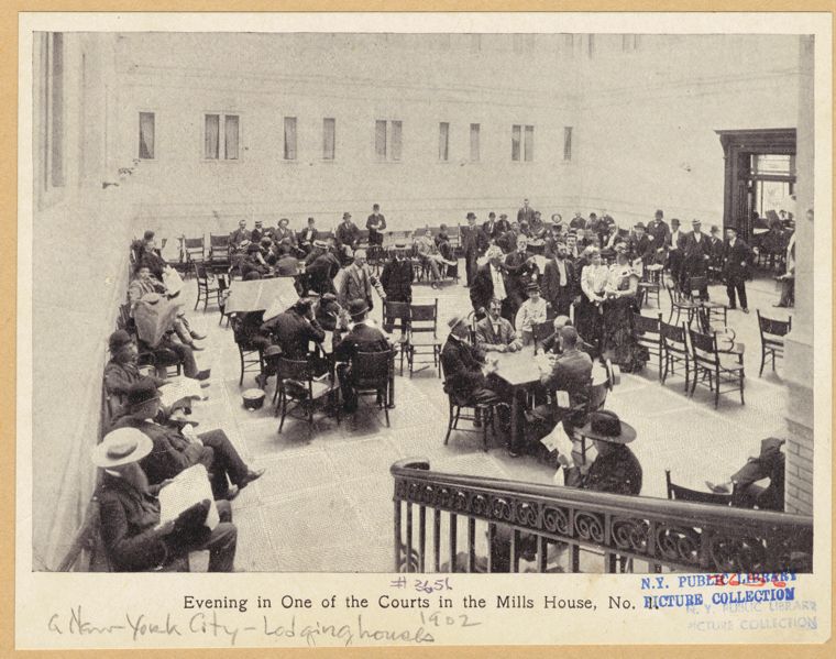 Riis noted that residents could take use of the “smoking and writing rooms, and a library for his use; games if he chooses, baths when he feels like taking one, and a laundry where he may wash his own clothes if he has to save the pennies, as he likely has to.”