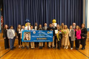 ELIZABETH — J. Christian Bollwage Finance Academy special education in-class support teacher Alice Debowski was honored as the 2026-2027 Union County Teacher of the Year in a surprise ceremony at the school on Friday, April 10.