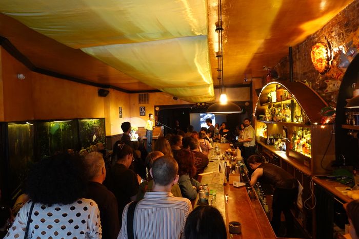 “We’re in a bar, but it doesn’t cross my mind,” says Daniel, who later accepts a free white wine from Sean Goldring, the bar manager. The real benefit is not the bar itself but rather the feeling of the room: casual, grubby, a place for play and for the play of ideas. Smith, whose book was launching that night, remembered back to her first meeting in the room: how she had wanted OR to publish her book, how she had been nervous before arriving, and how almost immediately she had felt like “we were just peers having a real conversation,” she says. “I didn’t have to impress them.”