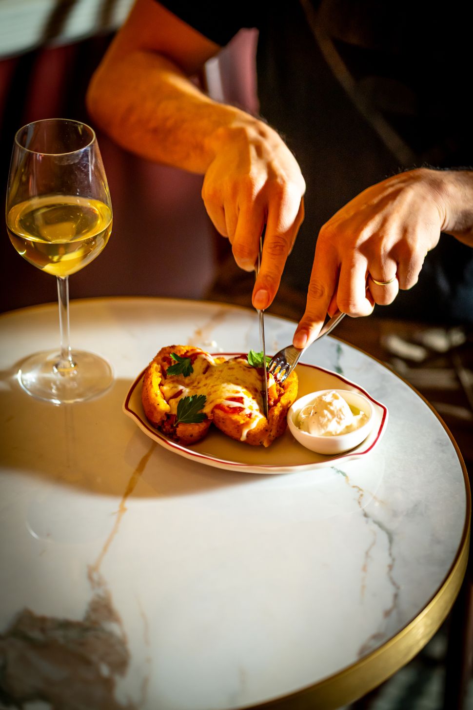 That 50/50 martini was a beautifully simple, more refreshing and approachable way to enjoy the drink’s classic profile. A Campari spritz with strawberry and basil was fragrant, bright, and satisfyingly bitter. Fernet with cola and mint felt medicinal in the best possible way—a true Italian amaro treat, especially appreciated after a carb-heavy parade of snacks.