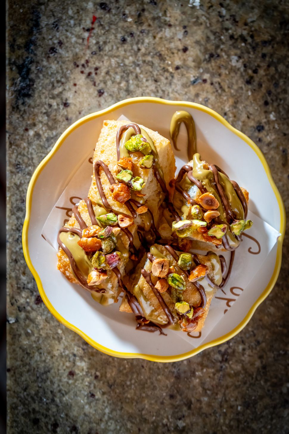 Pane fritto with Nutella and pistachio. Noah Fecks