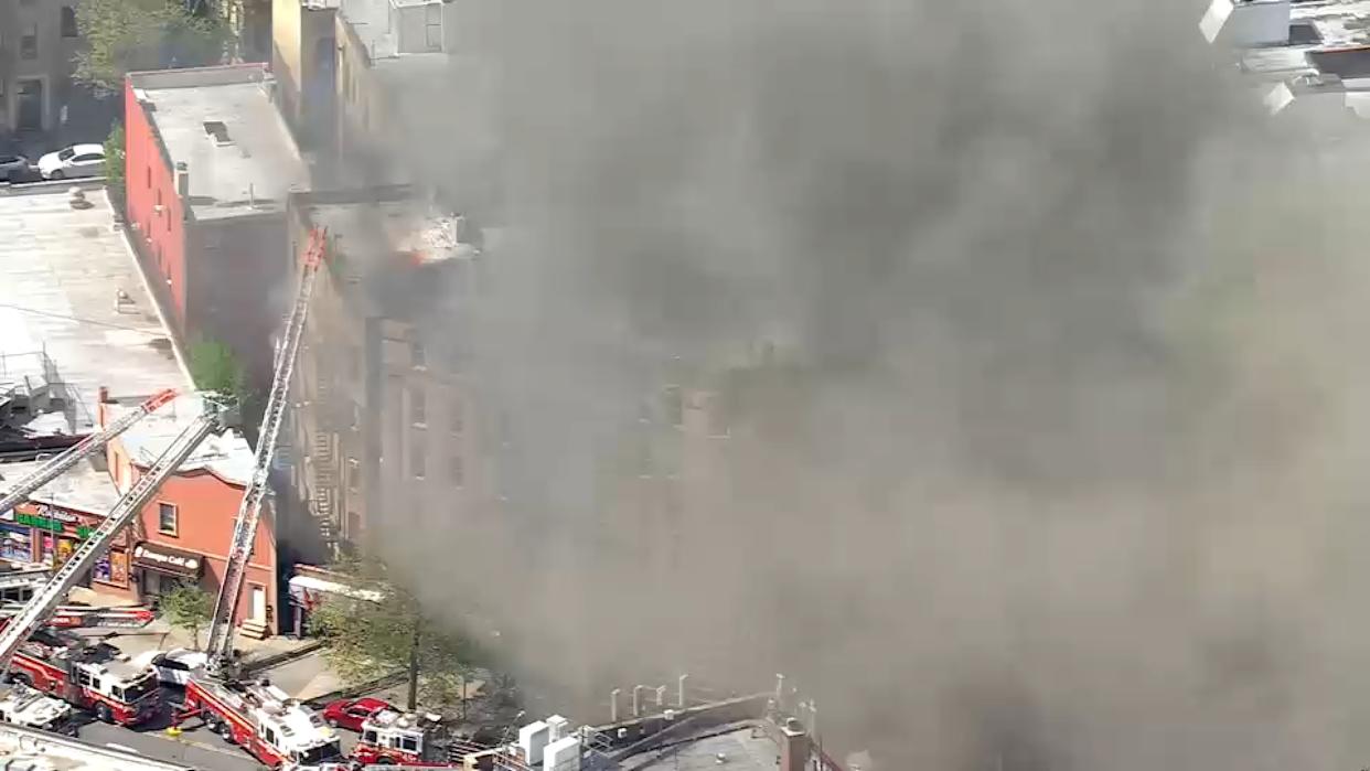 FDNY officials say firefighters extinguished fire on the first floor fours, but when they hit the top floor, the roof collapsed throughout a large portion of the building, as did part of the stairwell.