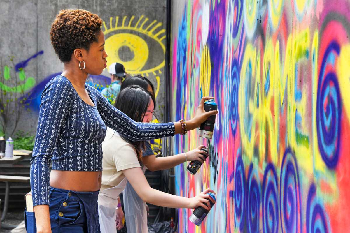 “It’s fun to see people exploring their artistic side and having a go at it,” she said. “Spray paint is, get it done quick, instant gratification, and when people try it out they realize how easy it is and how much fun art can be. Some museums make art seem stuffy and boring, but here they’re just having fun, no pressure.”