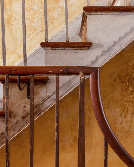 “We mostly just got rid of things,” Cunnick said. The last owners ran Meunier’s, a posh home-goods store on Montague Street, but their home was “all dropped tile ceilings and avocado green,” Cunnick said. With the contractor Robert Taffera, she peeled back seven layers of wallpaper to reveal plaster walls and took out new boards to uncover 1820s floors. Beams and brick were left exposed and, in some spots, so was the raw lath. “I thought I might cover some of that, but it’s just so beautiful,” said Cunnick. Her aesthetic, as she told The World of Interiors in 2005, was a “thin line between a fine carelessness and squalor.” She made no effort to cover over sections of plaster where cracks were repaired, and traces of white paint still mark the treads of the stripped-down staircase. Additions were minimal; a plasterer added back some indigo pigment in the living area on the parlor level, which opens to a library where a cabinetmaker added built-ins. The hall was painted with raw ocher, which, Cunnick clarifies, isn’t as fancy as it sounds. “It’s just mud,” she says. “One of the cheapest things you can buy.” She even kept the last owner’s appliances and their 1950s robin’s-egg-blue tub and sink — an outlandish move in 1995.