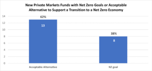 Private Equity: Companies predominantly focused on a business activity classified under the Burgiss category of “Eco Friendly” activities, including renewable energy, biofuel and other clean tech or associated companies. All data is NAV. We also included companies that largely aligned with our definition of climate solutions in public markets.