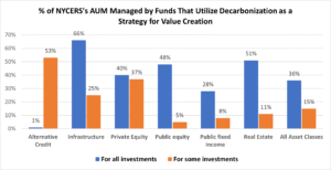 All NYCERS’s 45 public markets managers submitted plans to align with the NYCERS’s net zero goal by adopting a net zero goal, science-based targets or acceptable alternative approach to support a transition to a net zero economy.