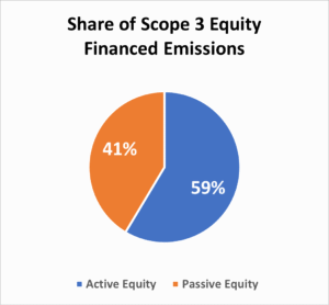 While the portfolio’s total passive equity market value is much greater than the active equity market value, the contribution of actively managed equity to Scope 3 financed emissions is greater than that of the passive equity.